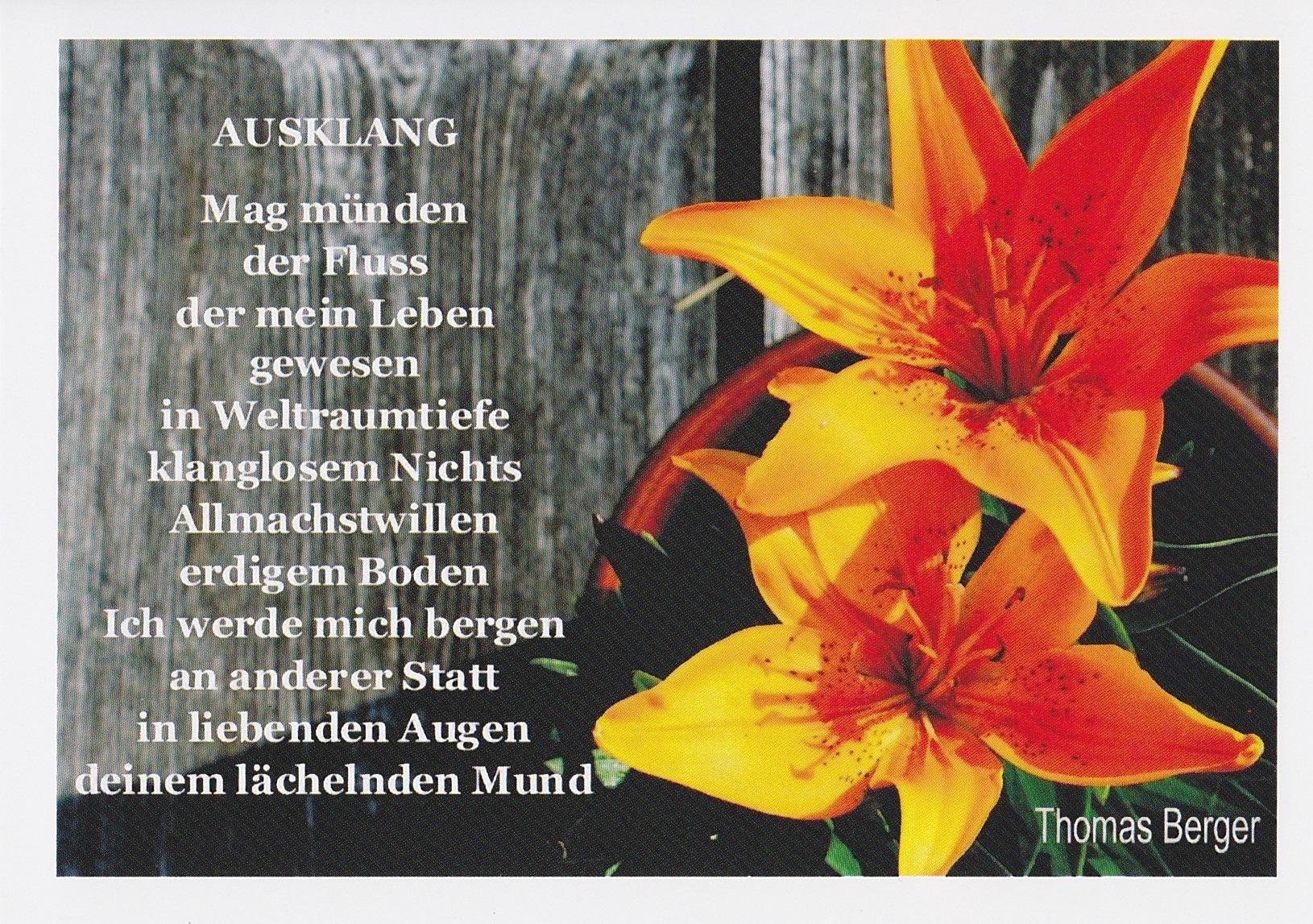 mit selbst verfassten Gedichtzeilen oder einer meditativen Prosazeile vor